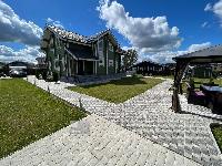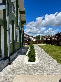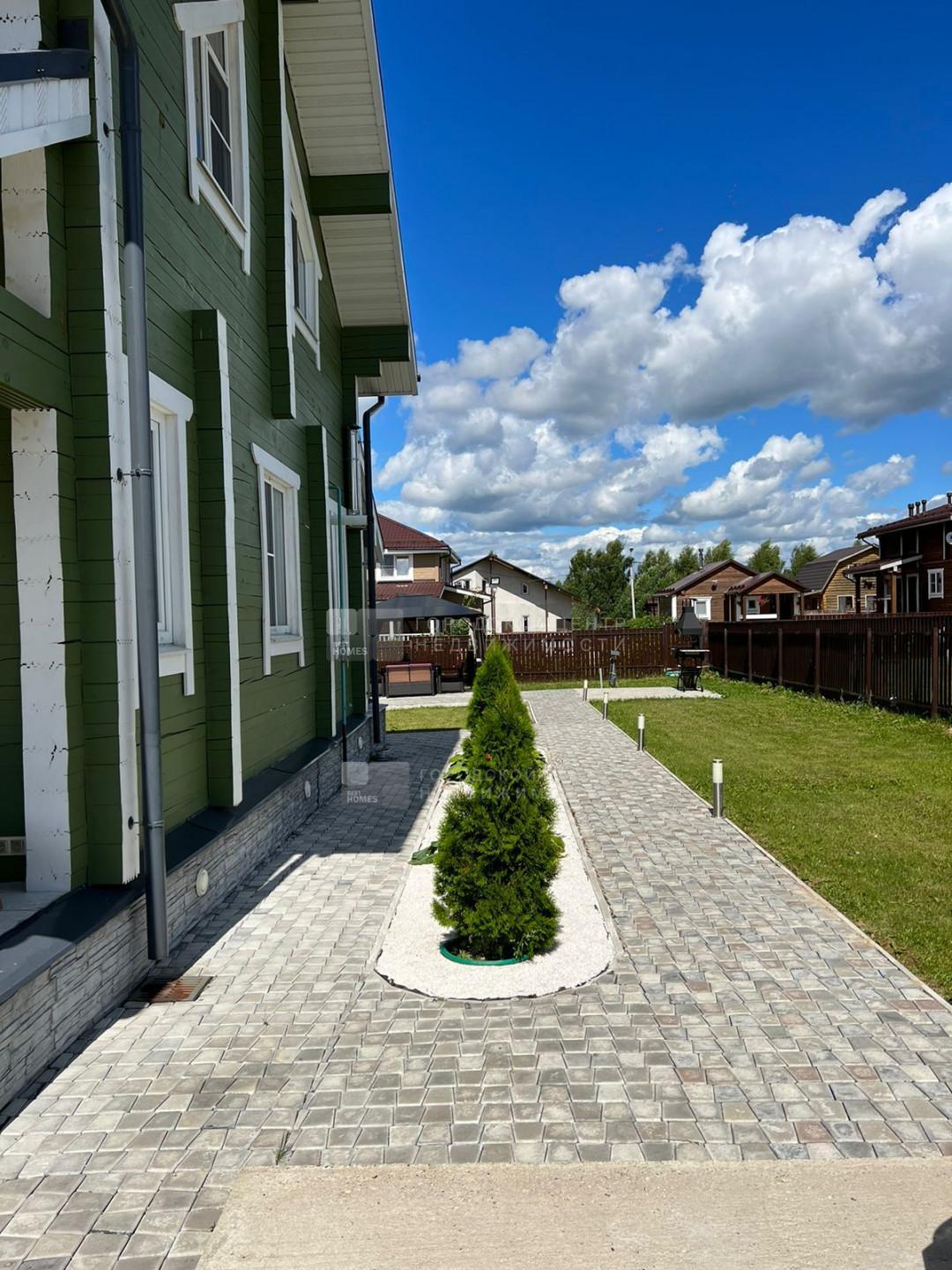Парковка на 2 авто, дорожки, отмостка вокруг дома, площадка под бассейном выложены красивой плиткой.