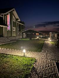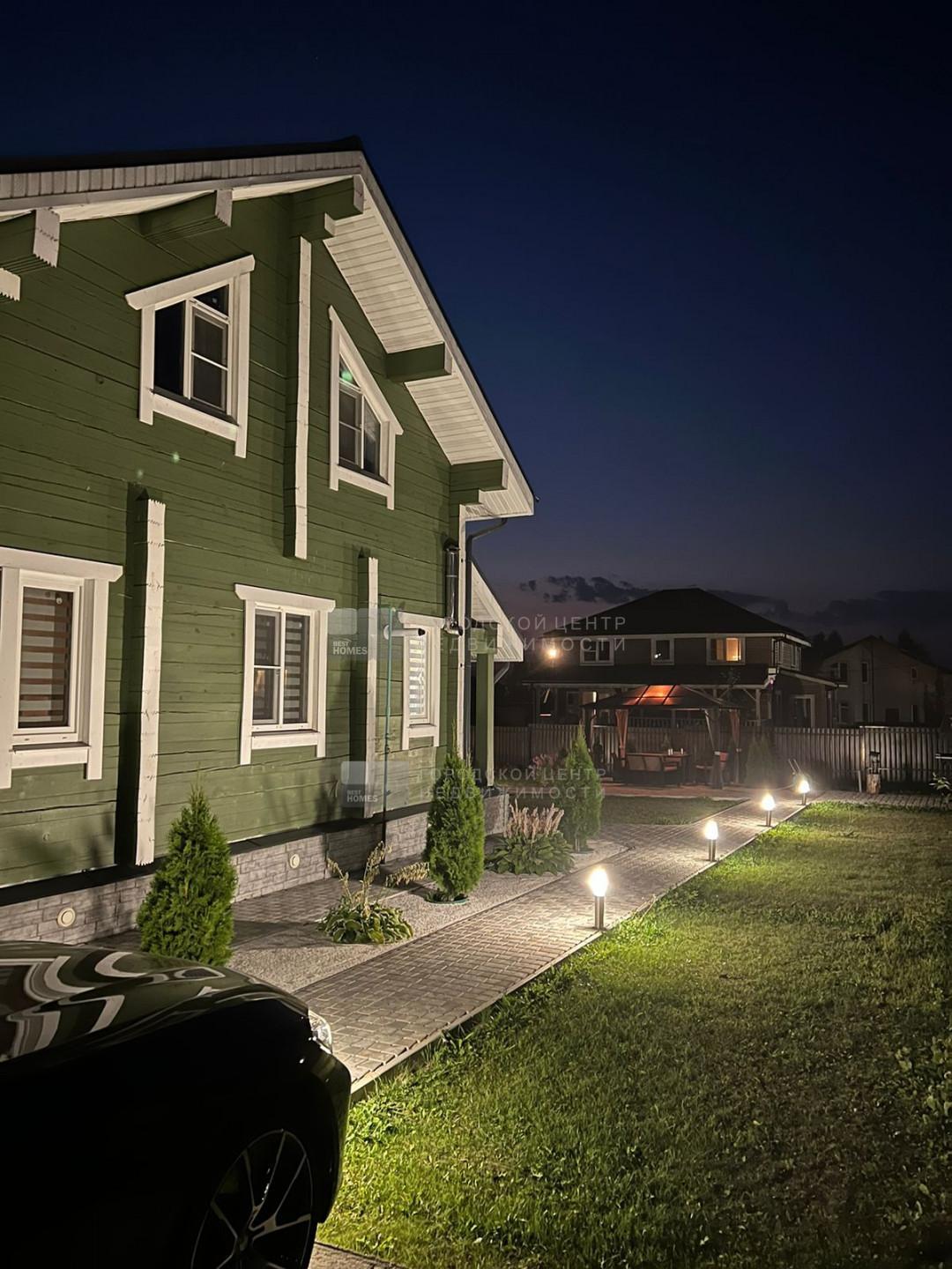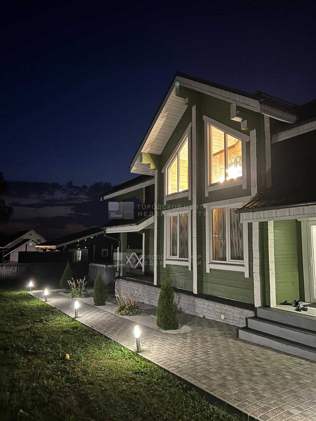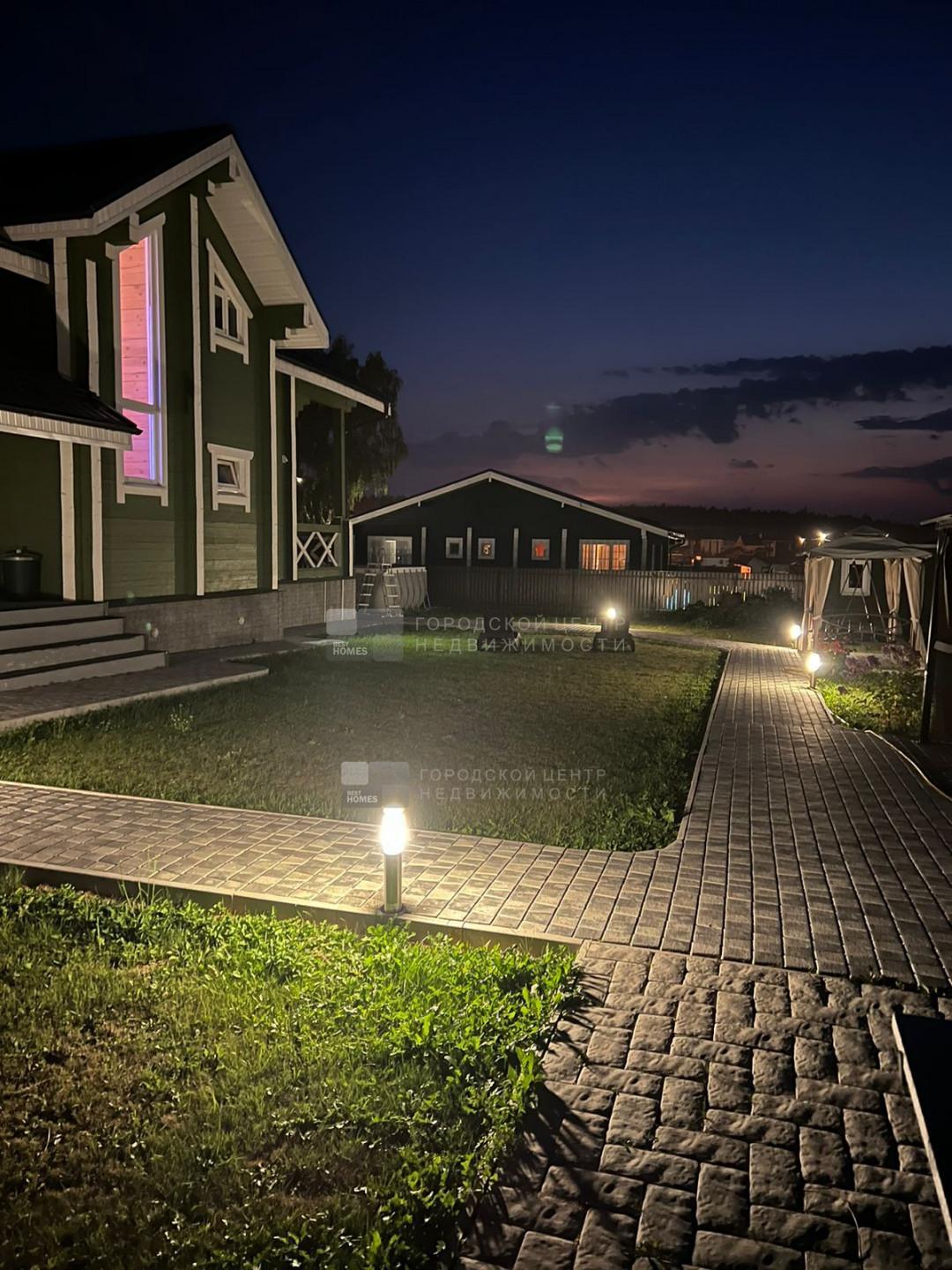 Внутри дома и снаружи по фасаду, а также по периметру дома сделана подсветка, создающая уютную атмосферу и зимой и летом.
