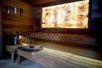 На первом этаже центральное место отведено двусветной гостиной-столовой 77кв.м с камином и эркером, которая перетекает с одной стороны в зону отдыха площадью 130 кв.м с бассейном, сауной и выходом в сад, а с другой стороны выходит к кухне и очаровательному зимнему саду 39 кв.м. с видом на участок. Кабинет, два сан.узла, холлы, гардеробная также заполняют первый этаж дома.