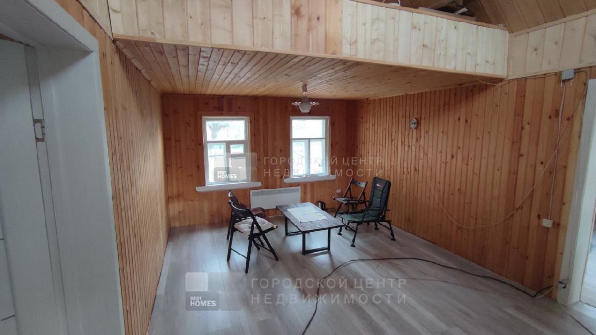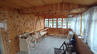 В доме есть одна большая комната, спальня, кухня и санузел. Также пристроена веранда.