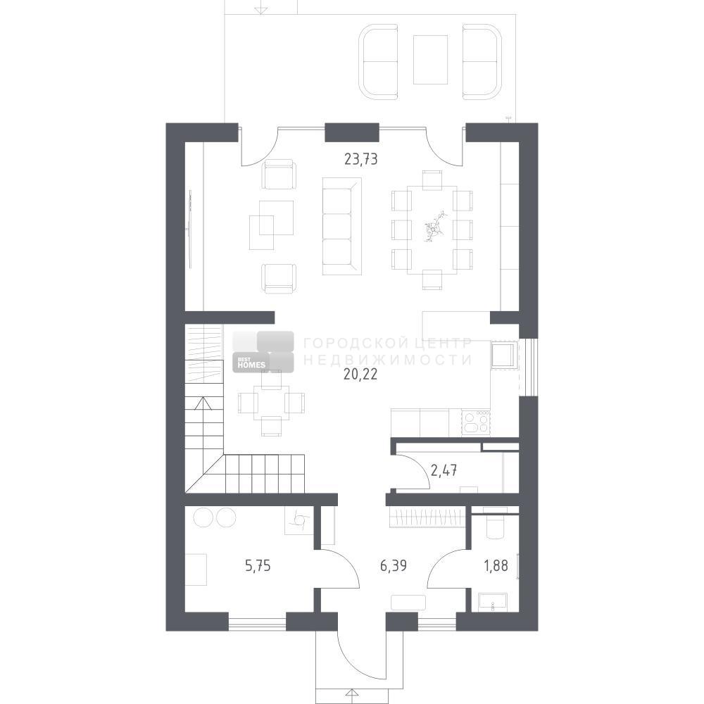Дом с готовой отделкой: в комнатах ламинат, окрашенные стены, натяжные потолки, в санузлах керамогранит на полу и стенах, оштукатурены потолки. Установлены сантехника и межкомнатные двери.