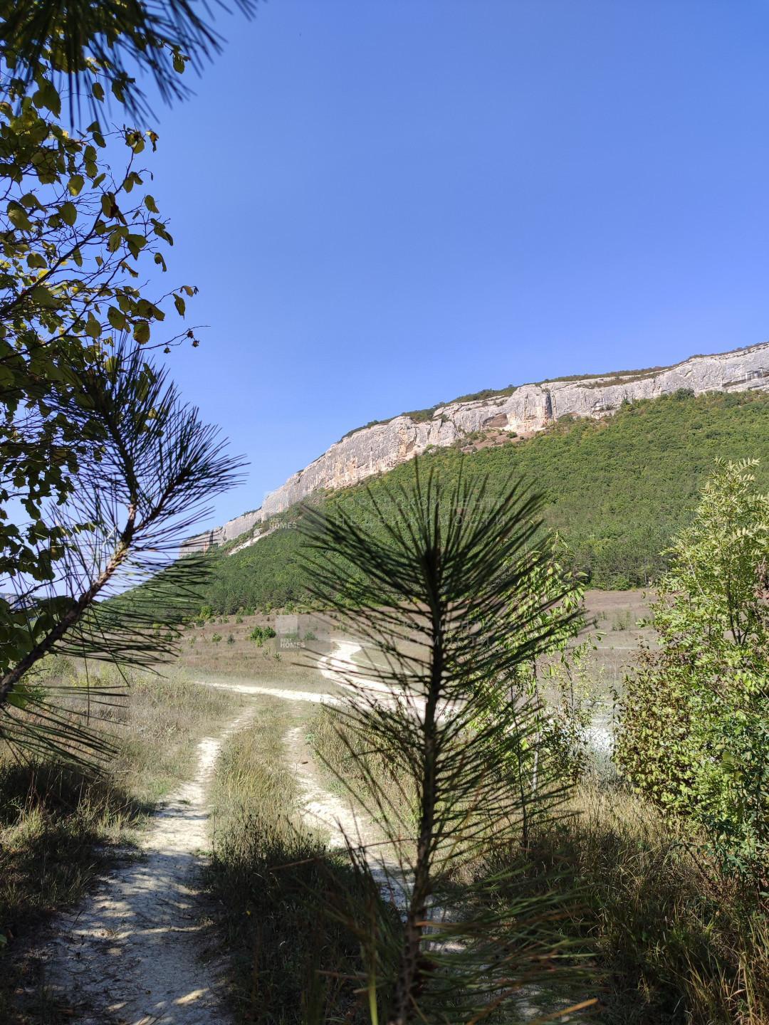 2 участка смежных в Бахчисарайском районе, под горой Мангуп-Кале. Красивое видовое туристическое место, дорога на пещерный город Мангуп. Ровное поле чуть под уклоном к горе, по границе сосновый бор с одной стороны и орешниковые и кизиловые рощи с другой.