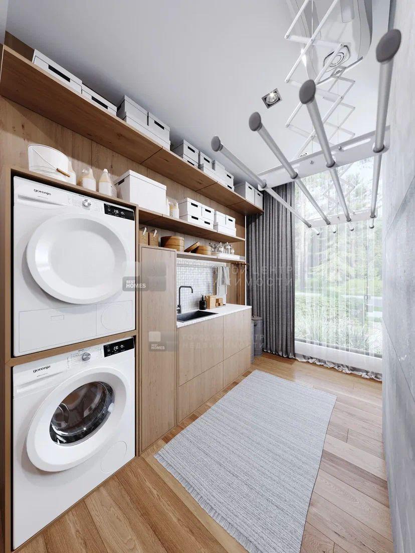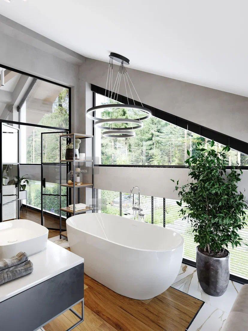 Интерьерная отделка, двух типов : white box и «под ключ». Дом, возводится по индивидуальному дизайн-проекту, с применением качественных материалов, премиум уровня. Отделка «под ключ», включает в себя кухню со встроенной техникой AEG. Возможен вариант меблировки дома. Камин. Постирочная и гардеробные помещения.
