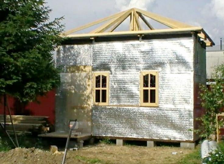 На участке построена баня 12 м2, до постройки основного дома можно использовать как жилой домик.