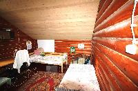 Дом -бревно: 1 этаж кухня- гостиная, гостевая комната, сан-узел, прихожая.
