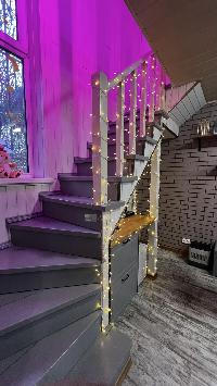 На первом этаже расположены: теплая веранда с камином, кухня-гостиная, жилая комната, котельная, санузел.