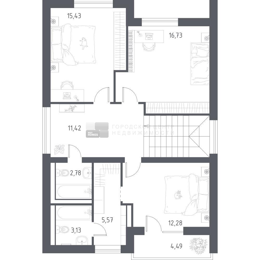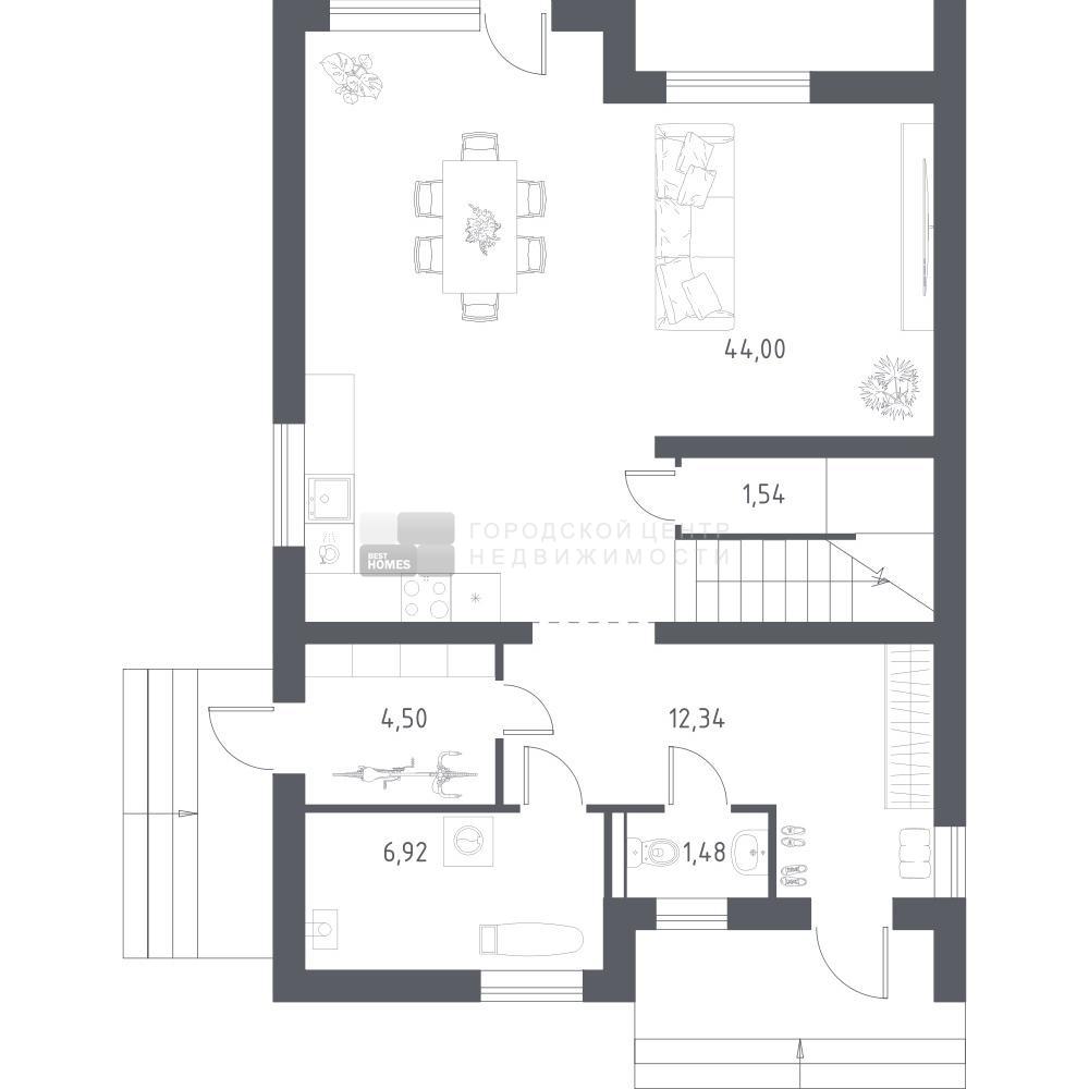 Дом с готовой отделкой: в комнатах ламинат, окрашенные стены, натяжные потолки, в санузлах керамогранит на полу и стенах, оштукатурены потолки. Установлены сантехника и межкомнатные двери.