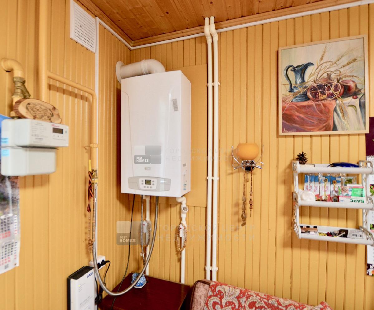 Добротный, ухоженный дом площадью 175 м.кв. с магистральным газом на красивом участке 11 соток с дизайном ландшафта садом и огородом рядом с хвойным грибным лесом и рекой, где можно и рыбу ловить и купаться. Пляж из белого песка. Место высокое сухое, в апреле (снег на фото) вода в колодце ниже пятого кольца. Вода в доме от скважины на 60 метров. Дом из бруса обложен кирпичом и покрыт декоративной штукатуркой, поэтому в доме летом прохладно, зимой тепло, легко дышится и крепко спится. В цокольном этаже ранее была баня с душем и с/узлом. При желании её легко устроить. Дымоход (выше на нём стоит камин), вода, канализация в наличии.