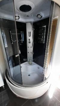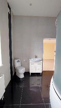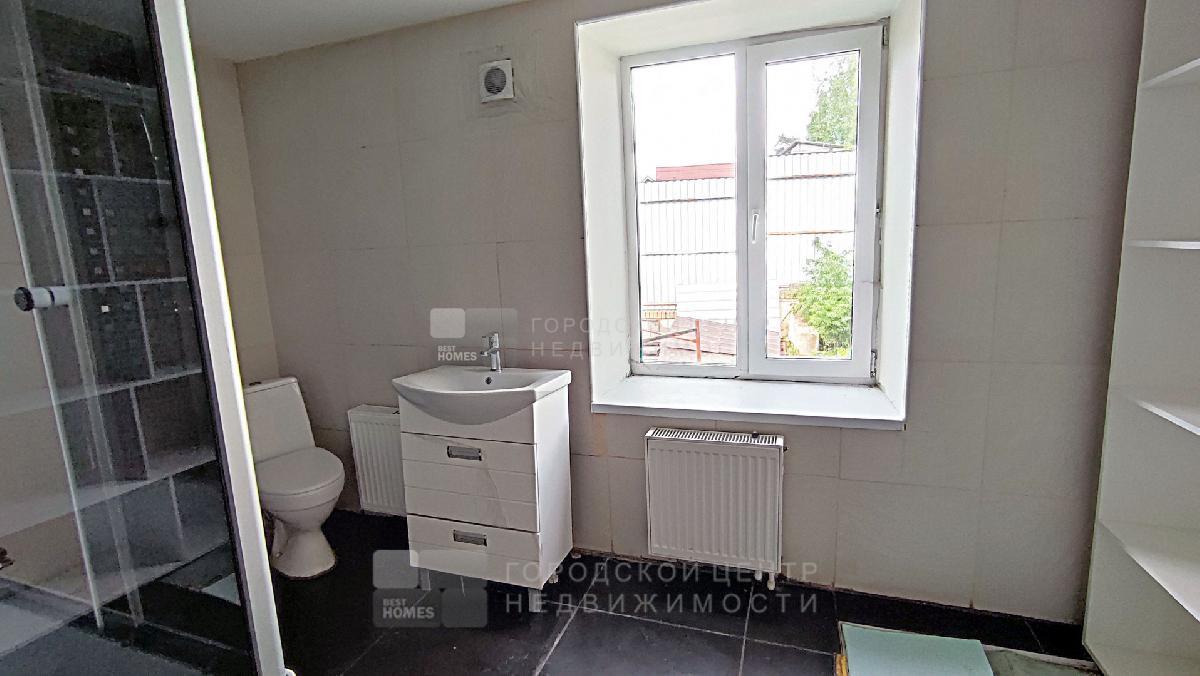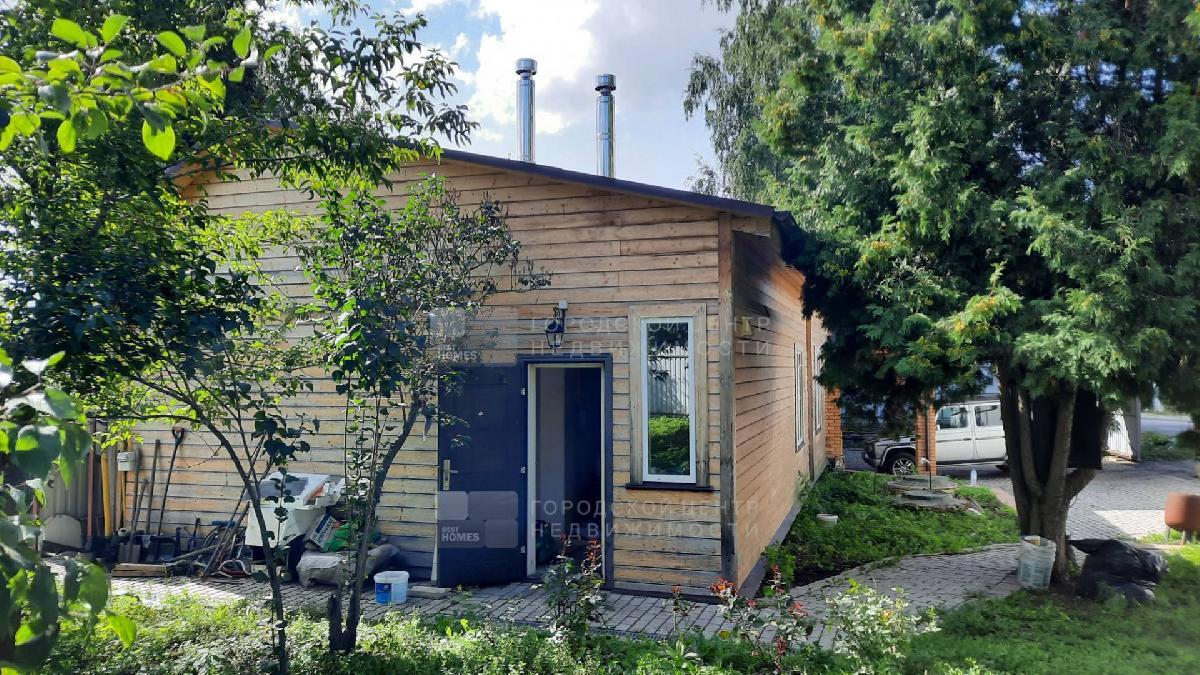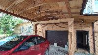 В нем находится не большая кухня, бойлерная, 3 контаты, большой санузел и холл со вторым выходом на заднюю часть участка, где расположен навес.