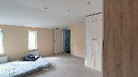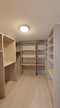 На 2-й этаж ведет стильная лестница, с которой попадаешь в длинный коридор, вдоль которого расположены 5 спален. Между всеми спальнями санузлы. Есть кардеробная для хранения вещей.