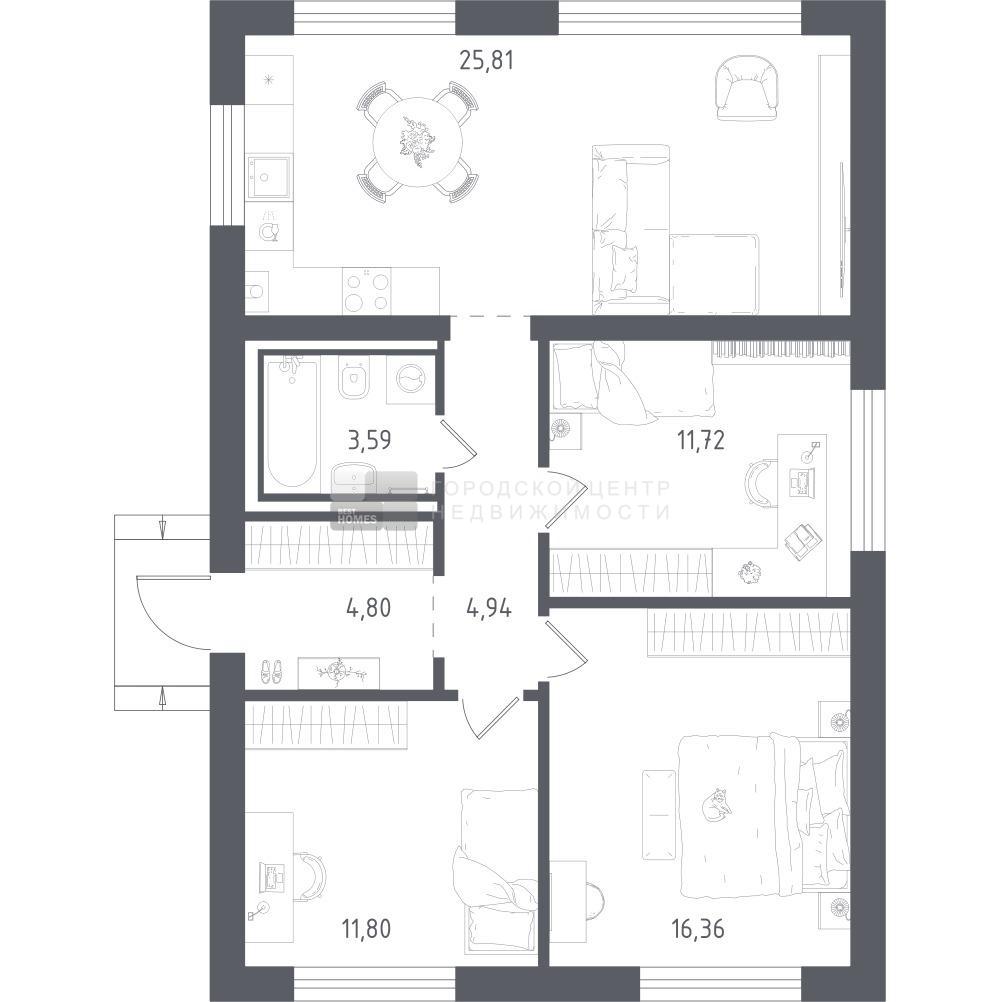В продаже дом площадью 85,5 м2 на участке 6,44 от Топ-1 застройщика России “Самолет” в загородном проекте “Истра Дом”.
