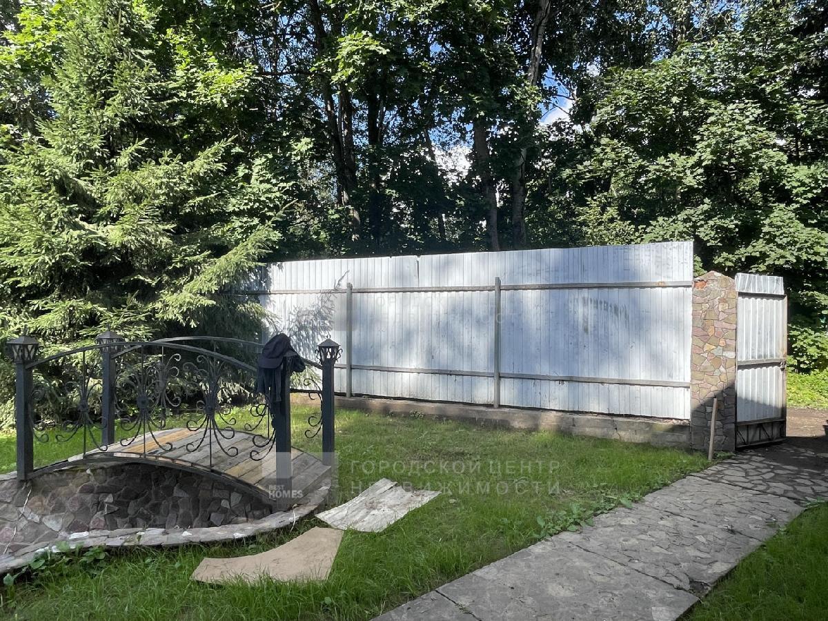 Участок в собственности, ровный, правильной формы, огорожен. На участке посеян газон. Композиция пруд с мостиком рядом с пушистой елью украшают входную группу дома.