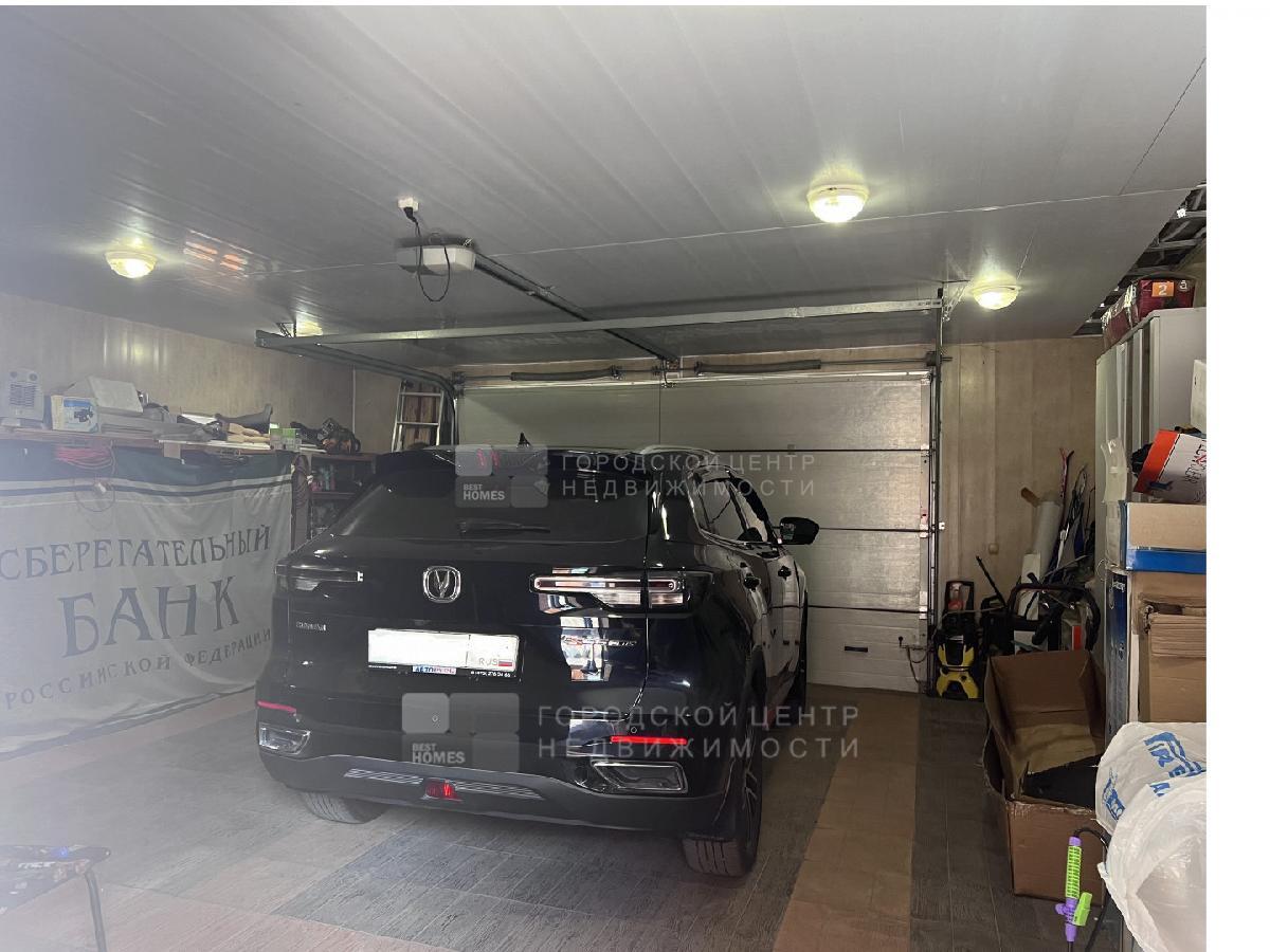 На участке расположен двухуровневый гараж 91.3 м2. На первом этаже два машиноместа, система хранения и мастерская; на втором этаже холл и две изолированные комнаты.