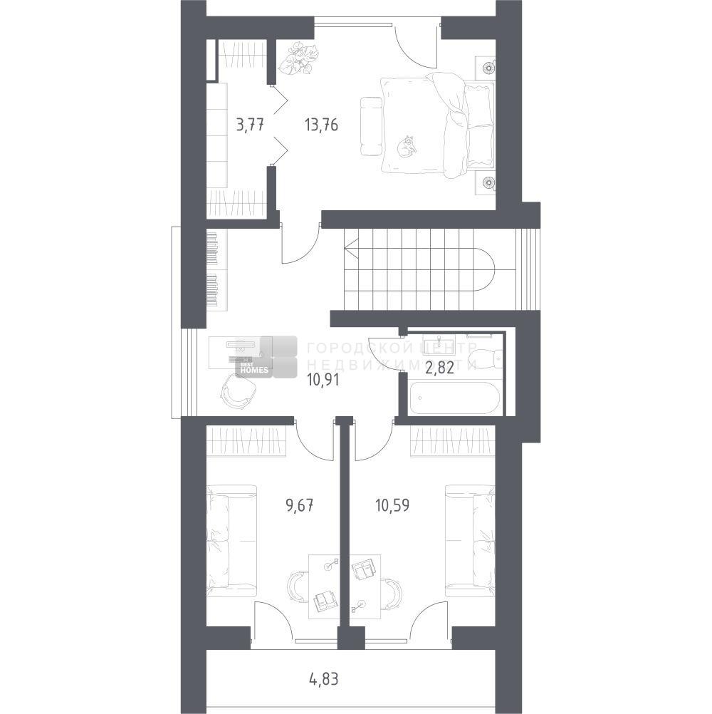 Дом с готовой отделкой: в комнатах ламинат, окрашенные стены, натяжные потолки, в санузлах керамогранит на полу и стенах, оштукатурены потолки. Установлены сантехника и межкомнатные двери.