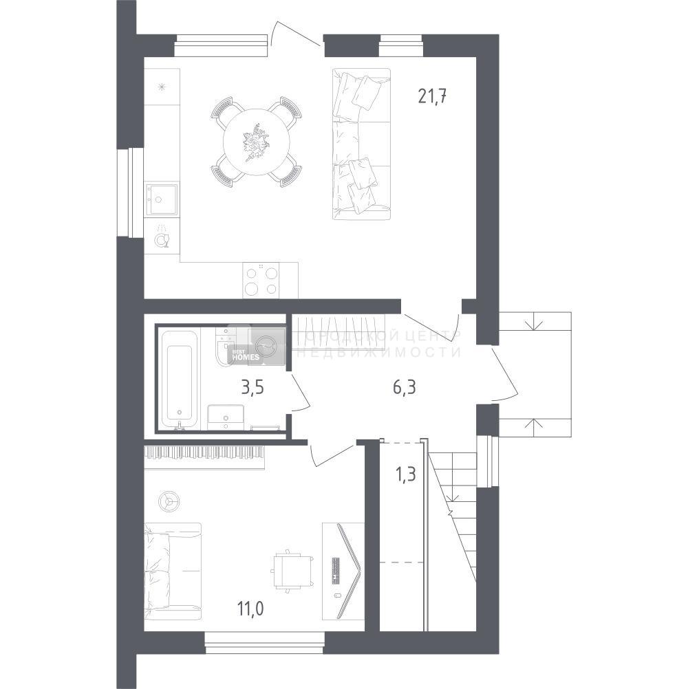 В продаже дом площадью 103,4 м2 на участке 5.01 от застройщика «Самолет» в загородном проекте «Пушкино дом у воды».