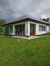 С задней стороны дома просторная крытая застекленная веранда. Раздвижные застекленные двери при входе.