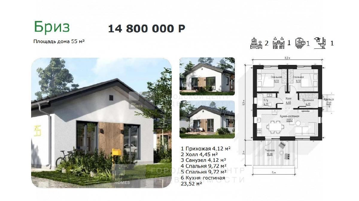 Реализуется одноэтажный дом 55 кв.м Проект "Бриз" (Подряд на строительство) на участке 7 соток в КП" Рижское Лето" (рядом с д. Дубровское). По Новорижскому шоссе в 50 км от МКАД.