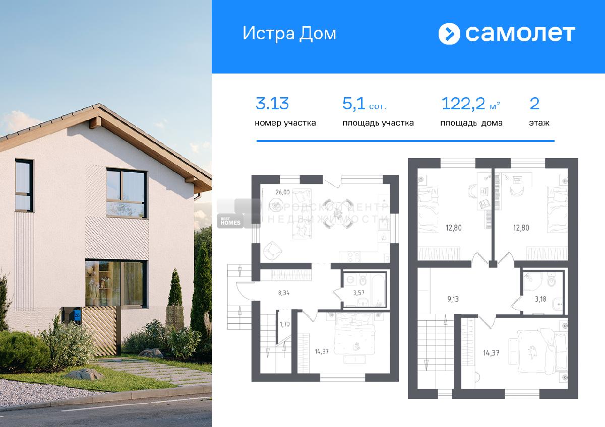 В продаже дом площадью 122,22 м2 на участке 5.1 от застройщика «Самолет» в загородном проекте «Истра Дом».