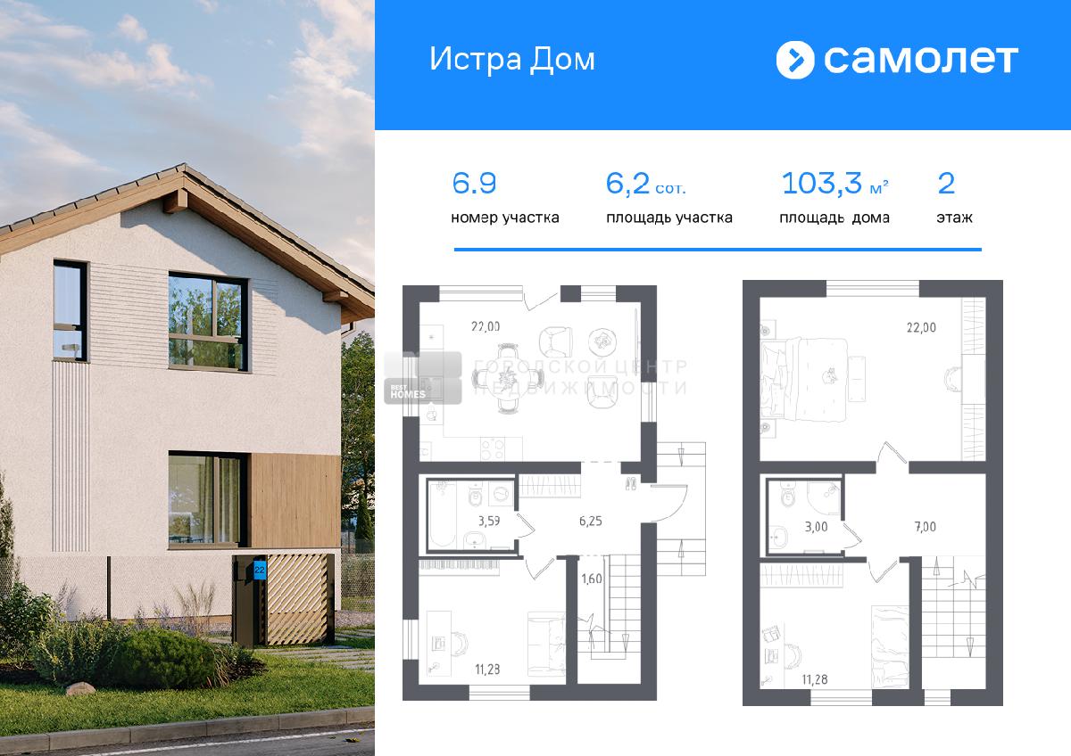 В продаже дом площадью 103,3 м2 на участке 6.16 от застройщика «Самолет» в загородном проекте «Истра Дом».