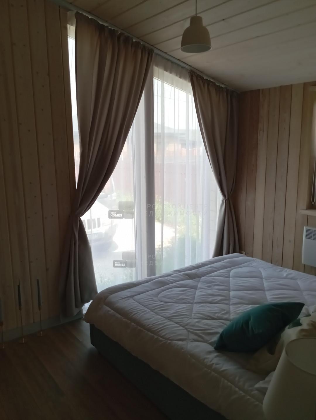 В доме три спальни 9,9; 9,8 и 7,3 кв.м., Прихожая - 3,1 кв.м., с/у с ванной - 4,0 кв.м.. Кухня-гостиная - 26,2 кв.м. с выходом на веранду под козырьком. Пол на веранде - лиственница.