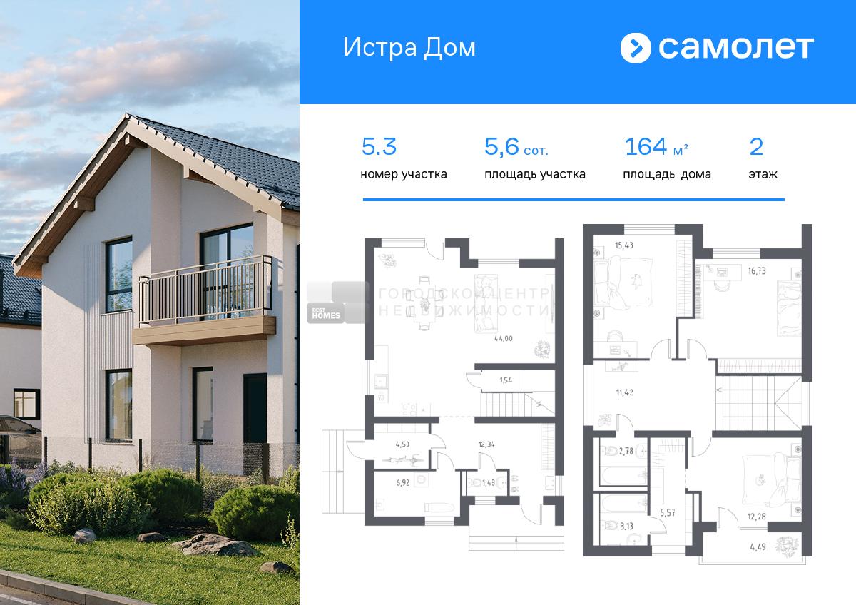 В продаже дом площадью 163,95 м2 на участке 5.57 от застройщика «Самолет» в загородном проекте «Истра Дом».