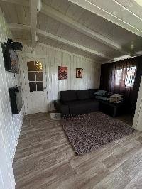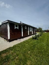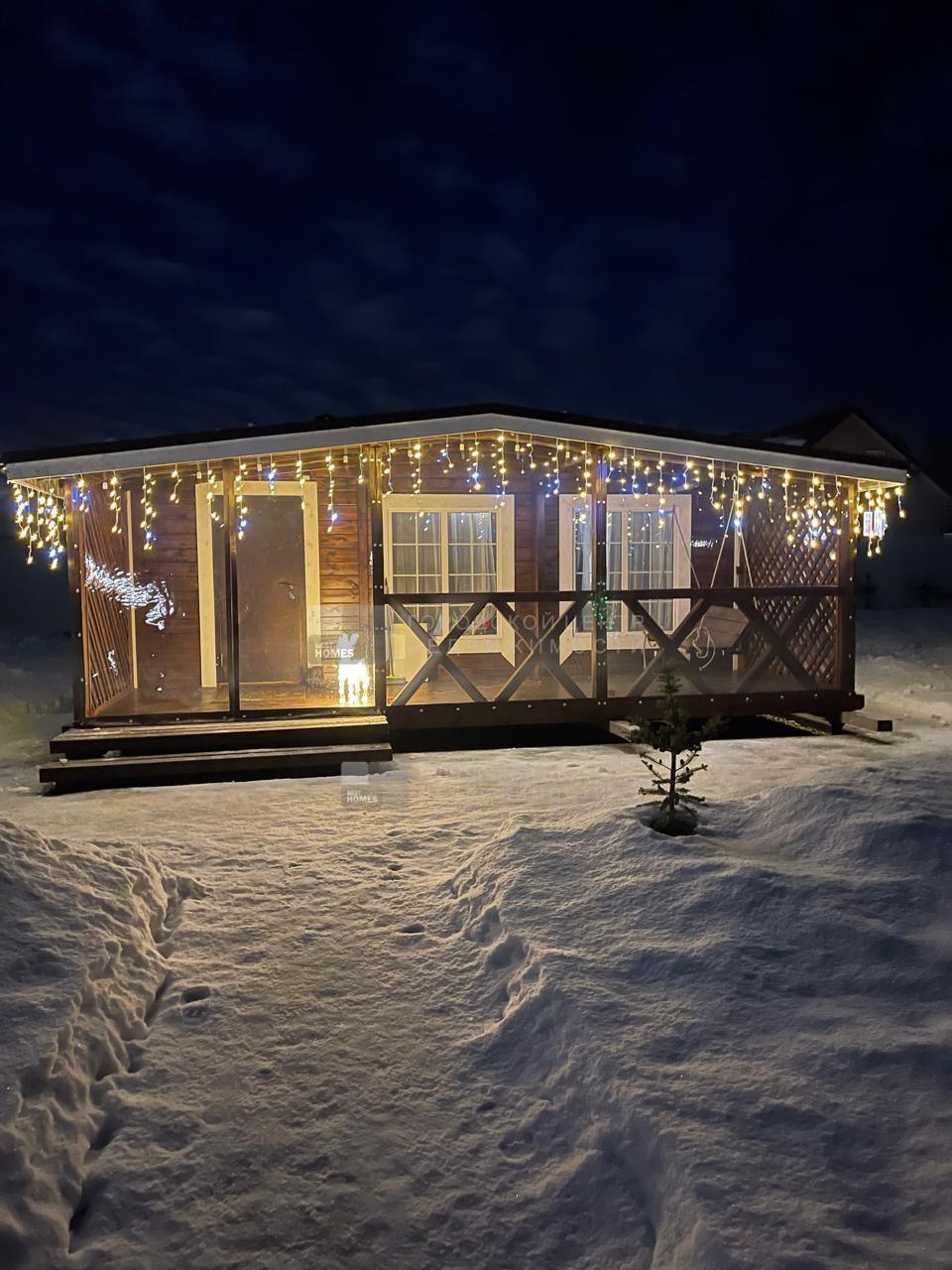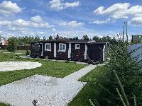 На входе просторная крытая терраса с гибким стеклом, холл, кухня-гостиная, спальня, раздельный с/у с душевой кабиной.