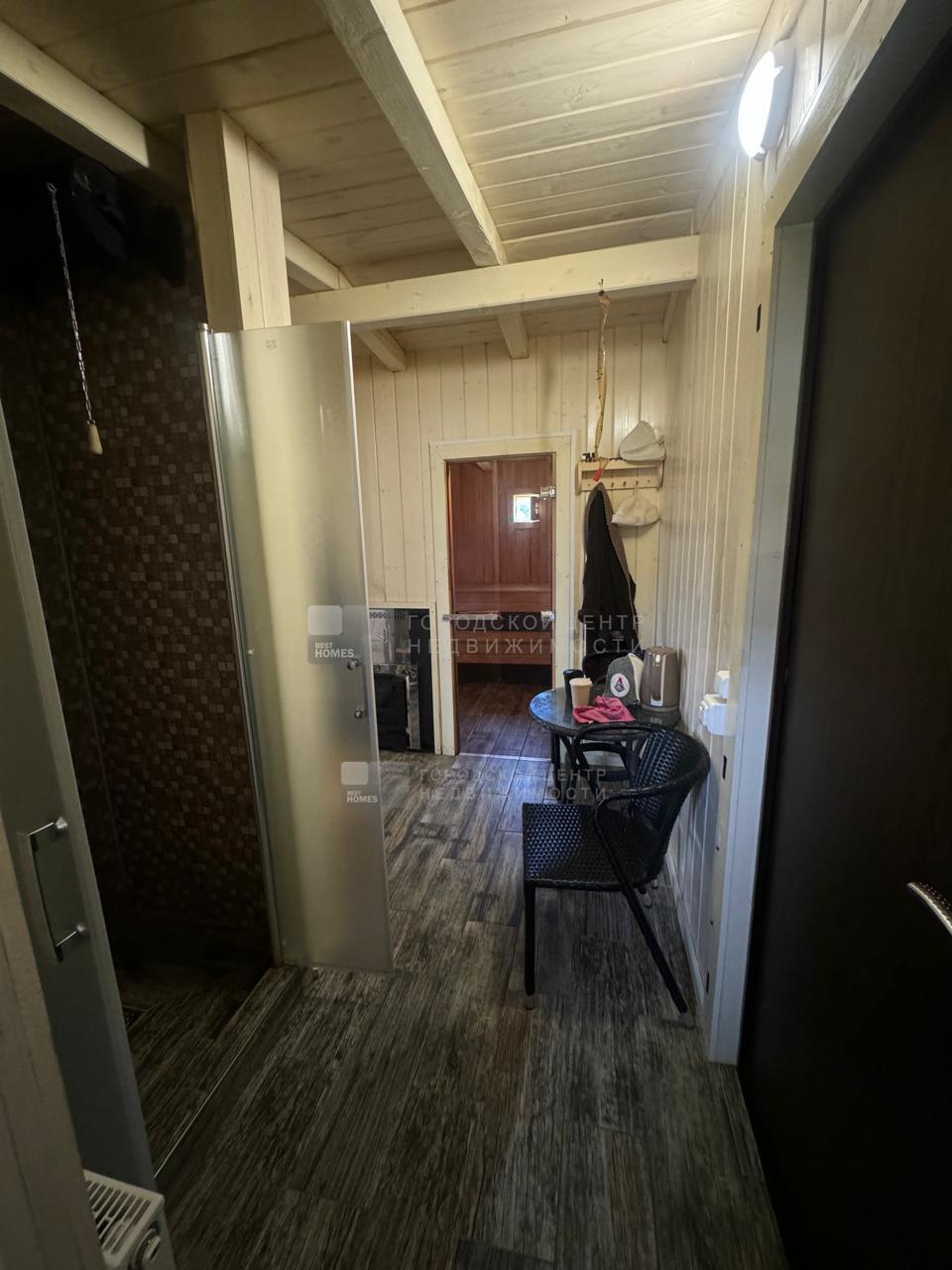 В доме обустроена баня на дровах с комнатой отдыха. В с/у опрокидывающееся ведро для ополаскивания после парной.