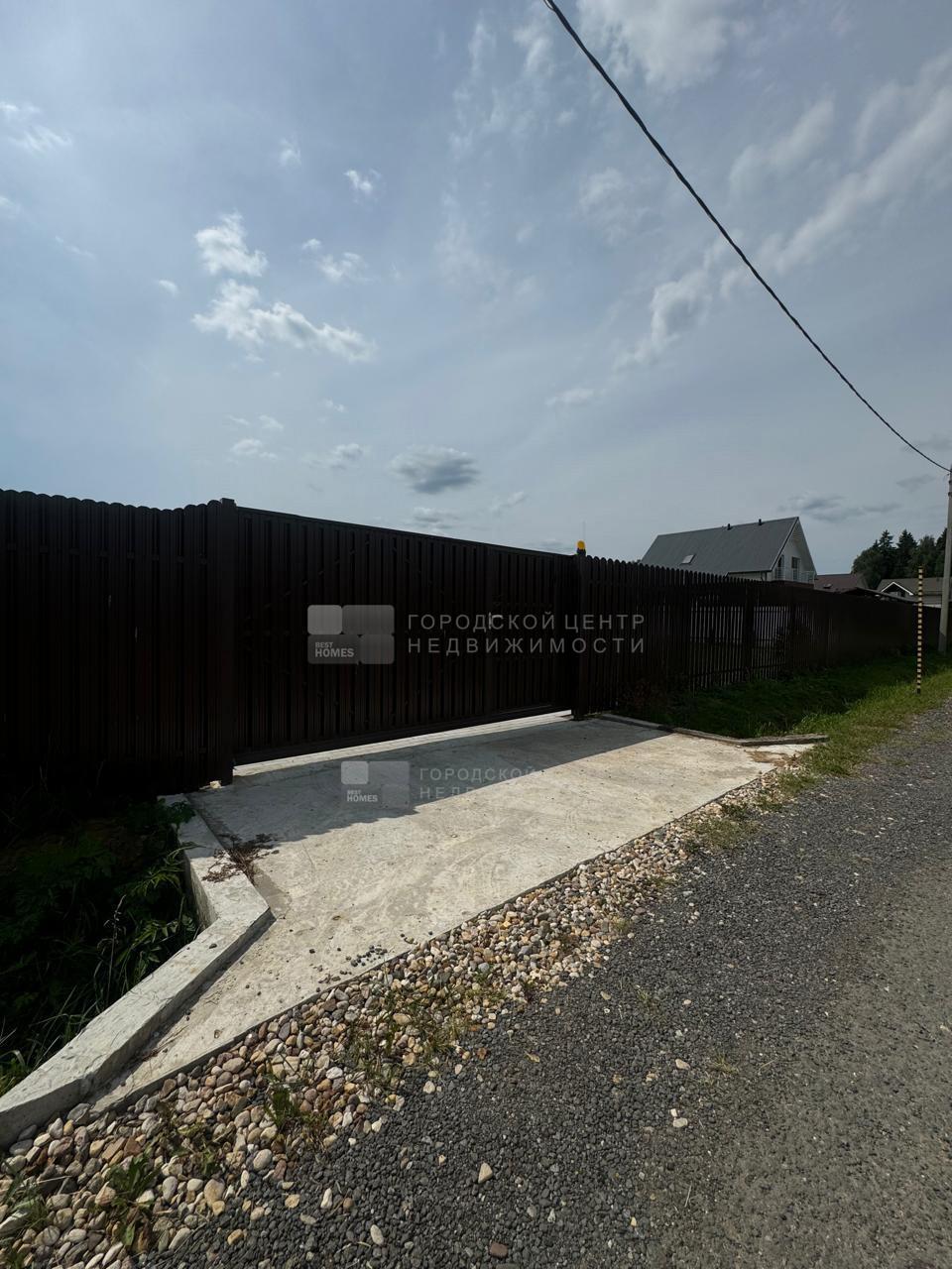 Ровный участок 12,6 соток правильной прямоугольной формы огорожен с трех сторон забором (по фасаду штакетник, справа и сзади аккуратный профлист, слева забора нет).