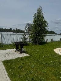 Участок выровнен и засажен мягкой садовой травой. Регулярно прокашивается.
