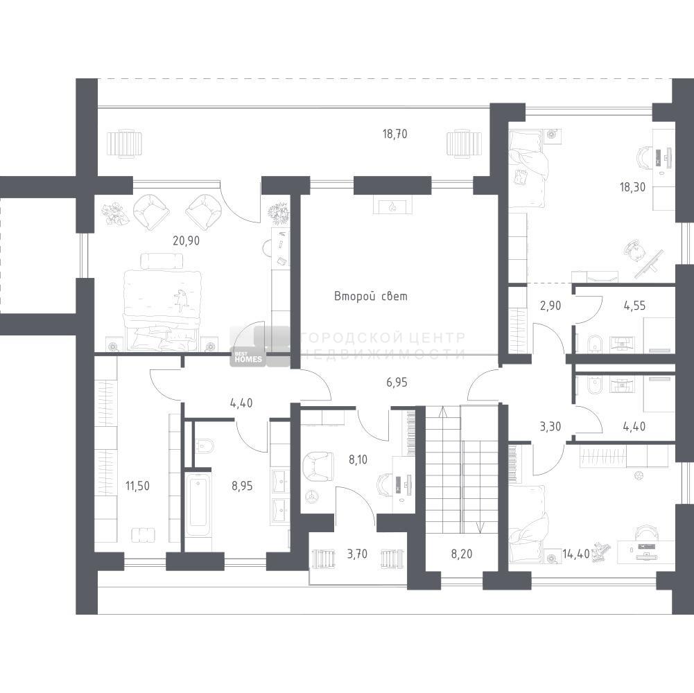В продаже вилла площадью 321,4 м2 на участке 8.44 от Топ-1 застройщика России «Самолет» в загородном проекте PORT EMM ZAVIDOVO.