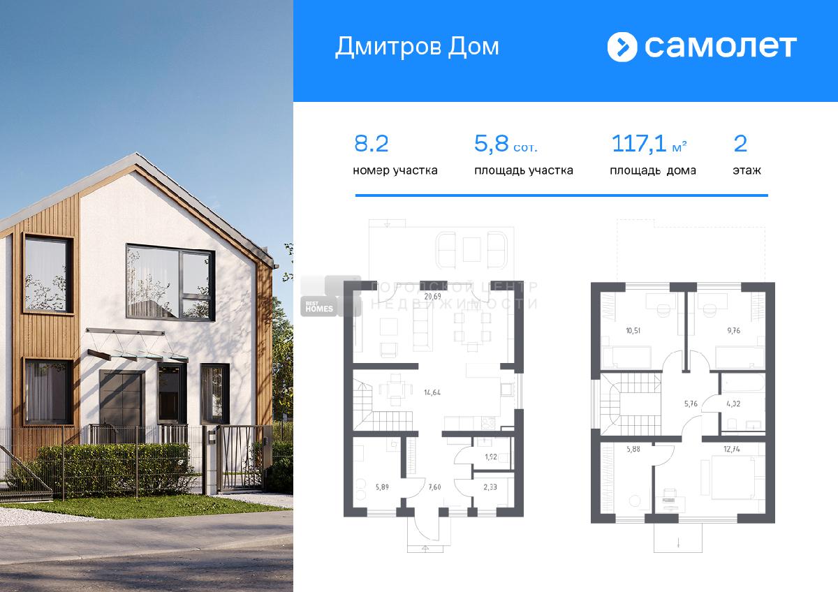 В продаже дом площадью 117,06 м2 на участке 5.76 от застройщика «Самолет» в загородном проекте «Дмитров Дом».