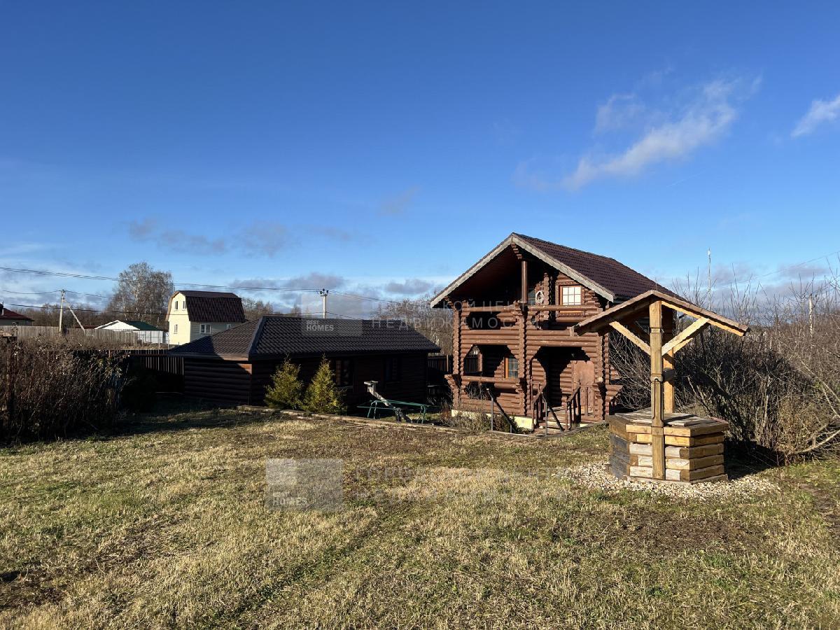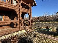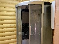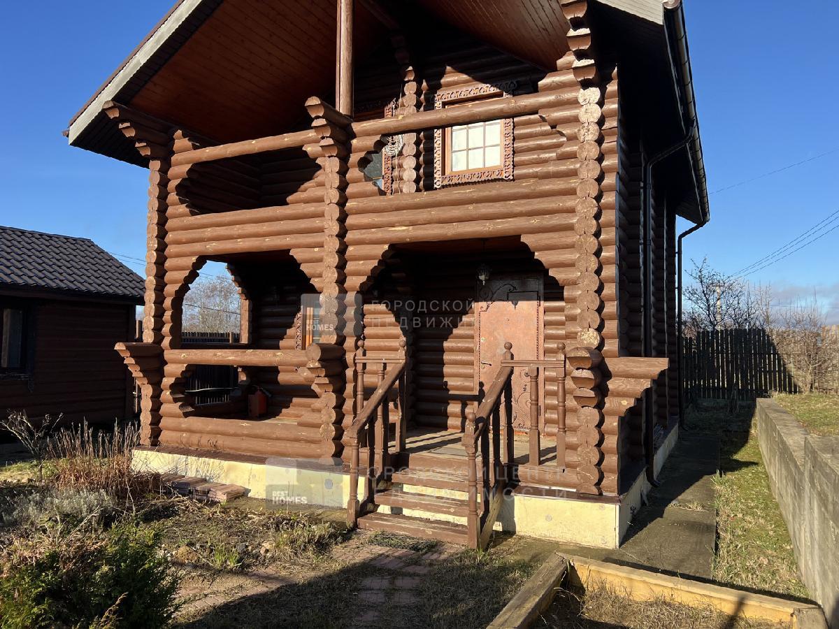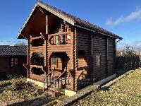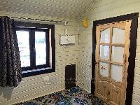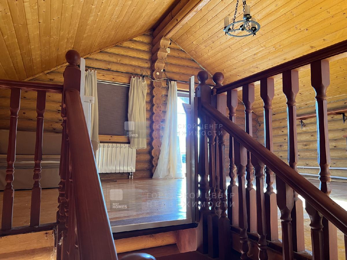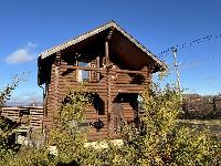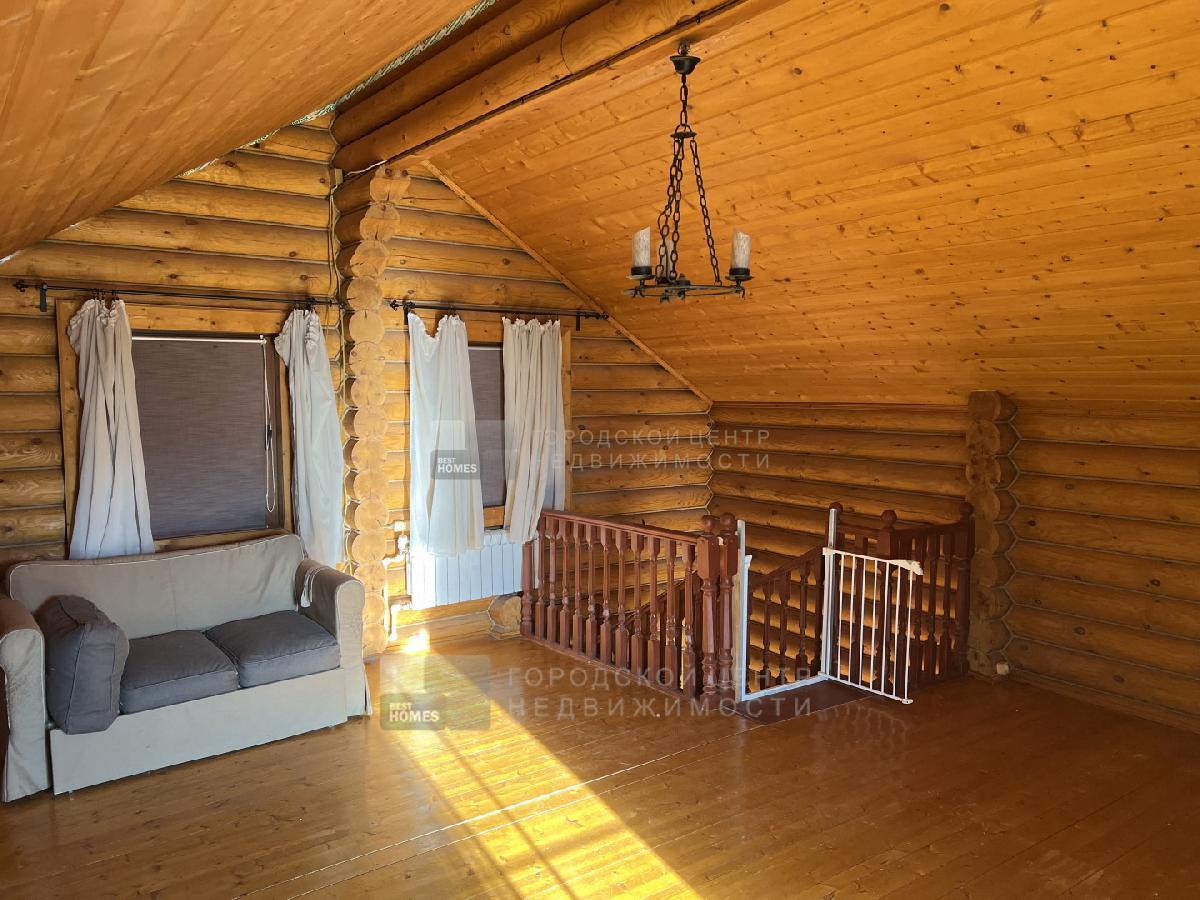 Материал стен оциллиндрованное бревно диаметром 220 мм. Обработано снаружи пропиткой темно-коричневого цвета. Внутри интерьер цвета натурального дерева.