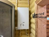 Бойлер для ГВ в большом доме 120л, в маленьком два по 20л (в с/у и кухне).