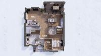 - Холл, кухня- гостиная, котельная и один из санузлов, гостевая спальня.