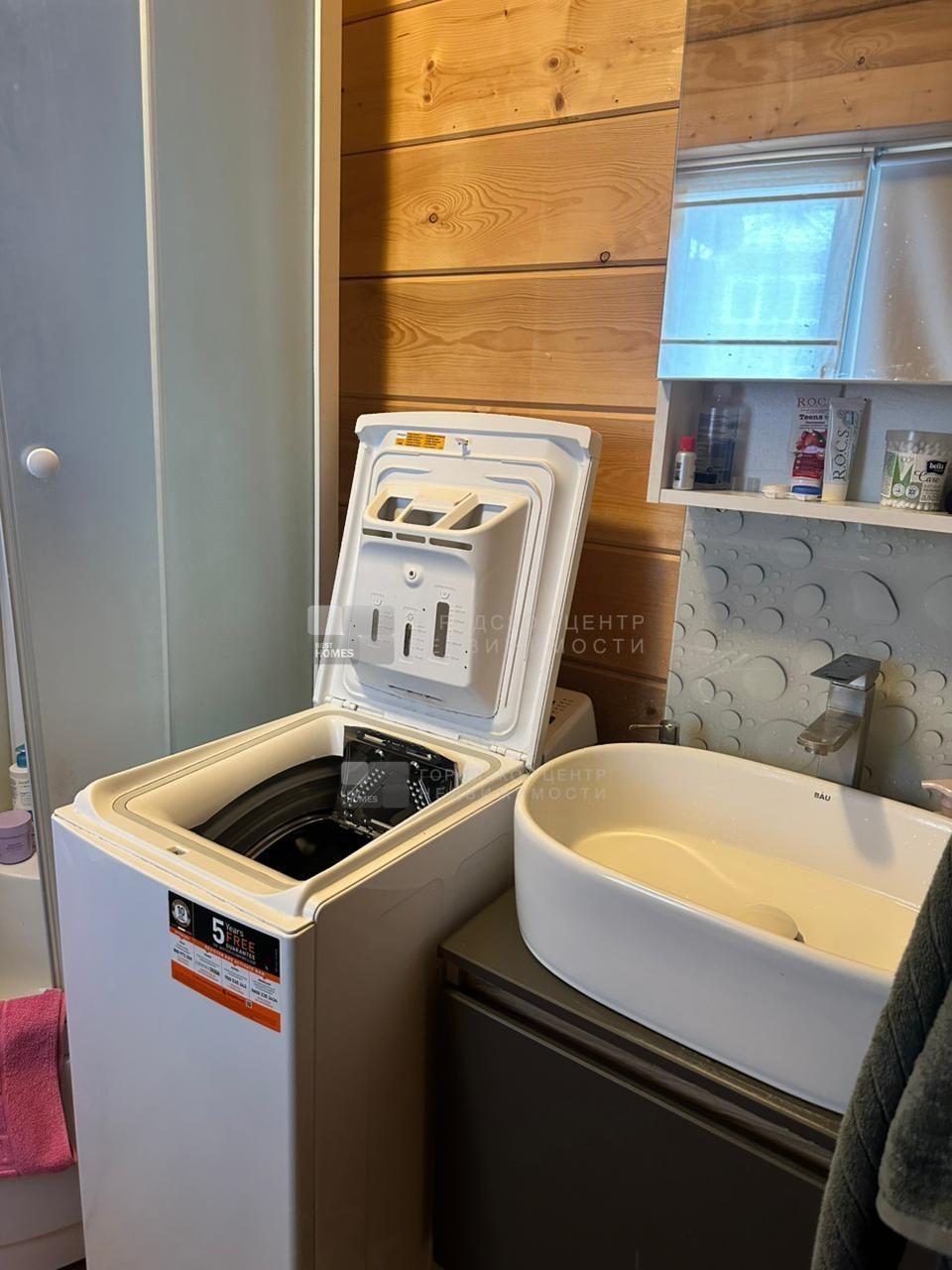 Новым хозяевам остаются комплект кухонной мебели со встроенной техникой, холодильник, СВЧ-печь, электрическая плита, 2 телевизора, стиральная машина вертикальной загрузки, газонокосилка.