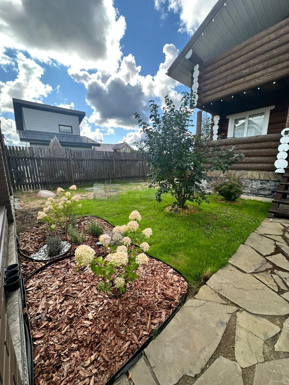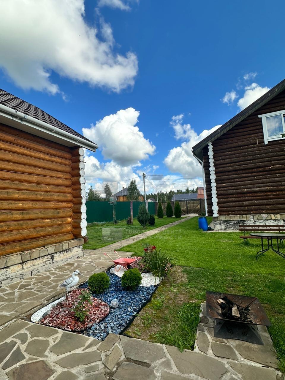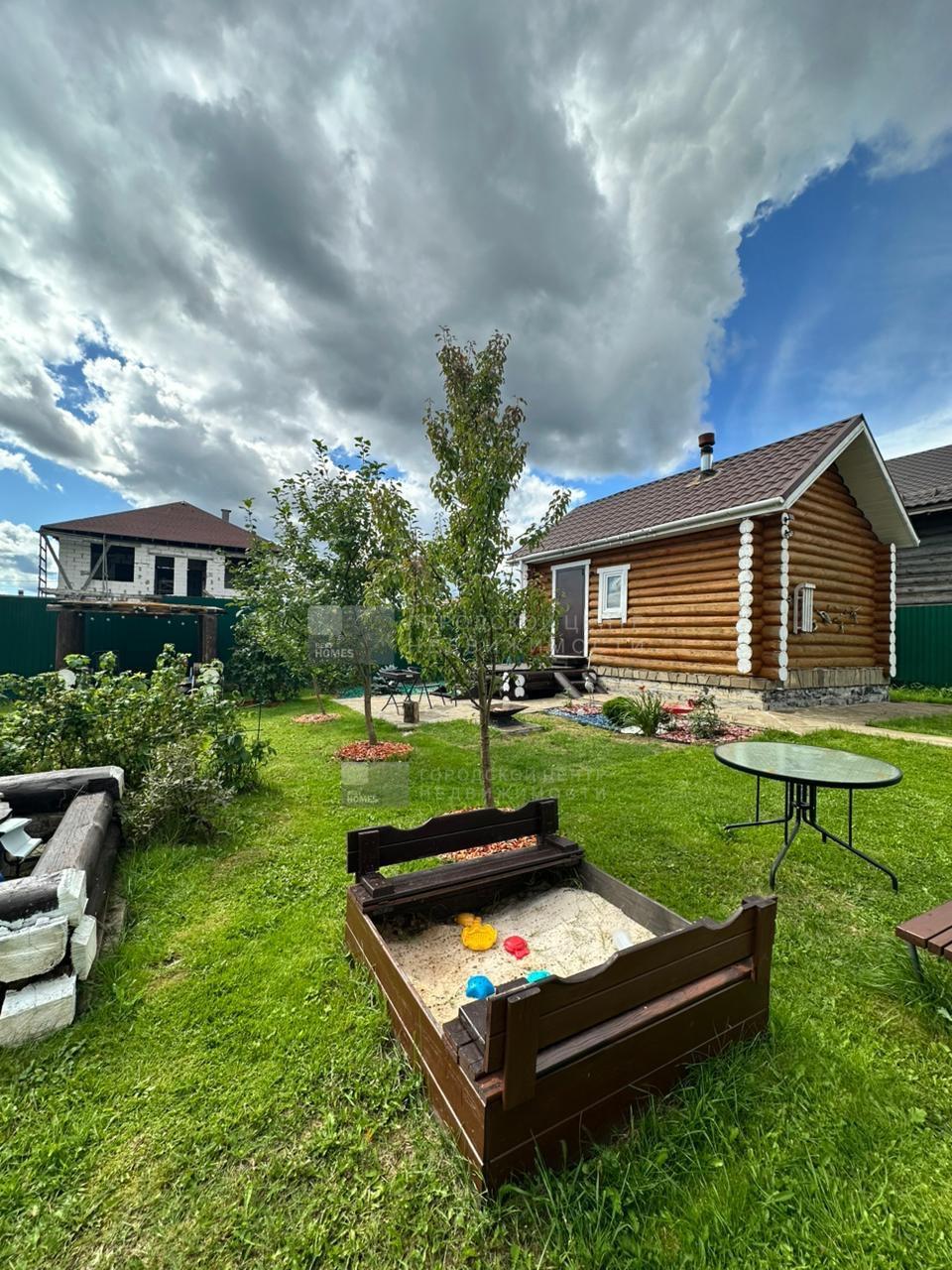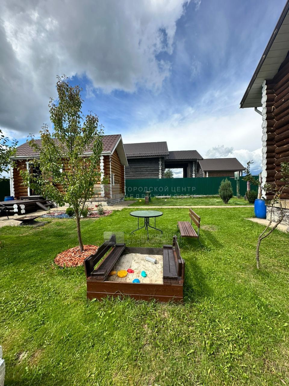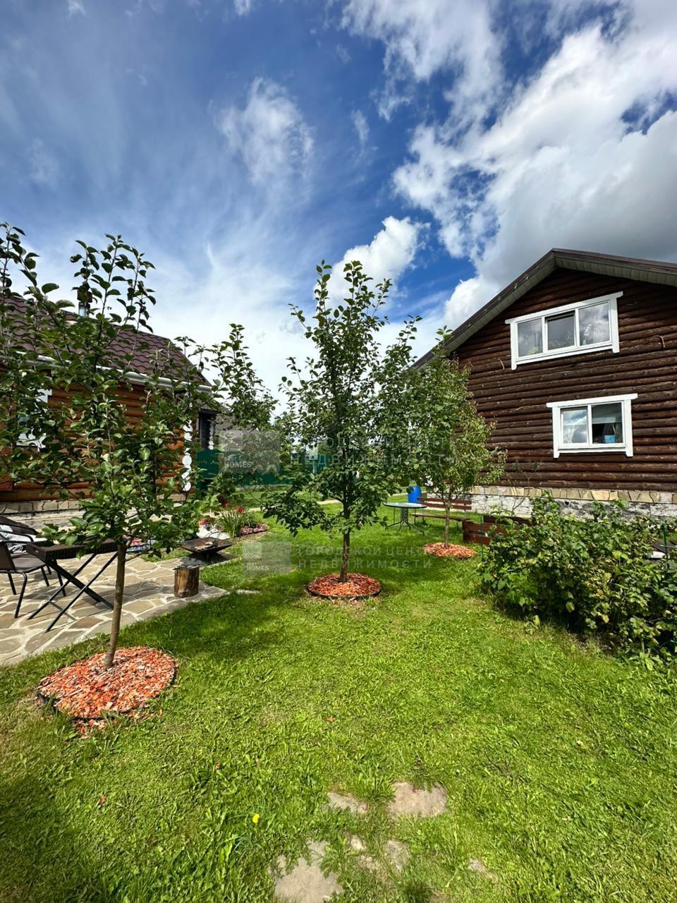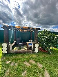 В дальнем конце участка обустроена бревенчатая летняя кухня. Есть небольшой спортивный уголок. комплект садовой мебели.