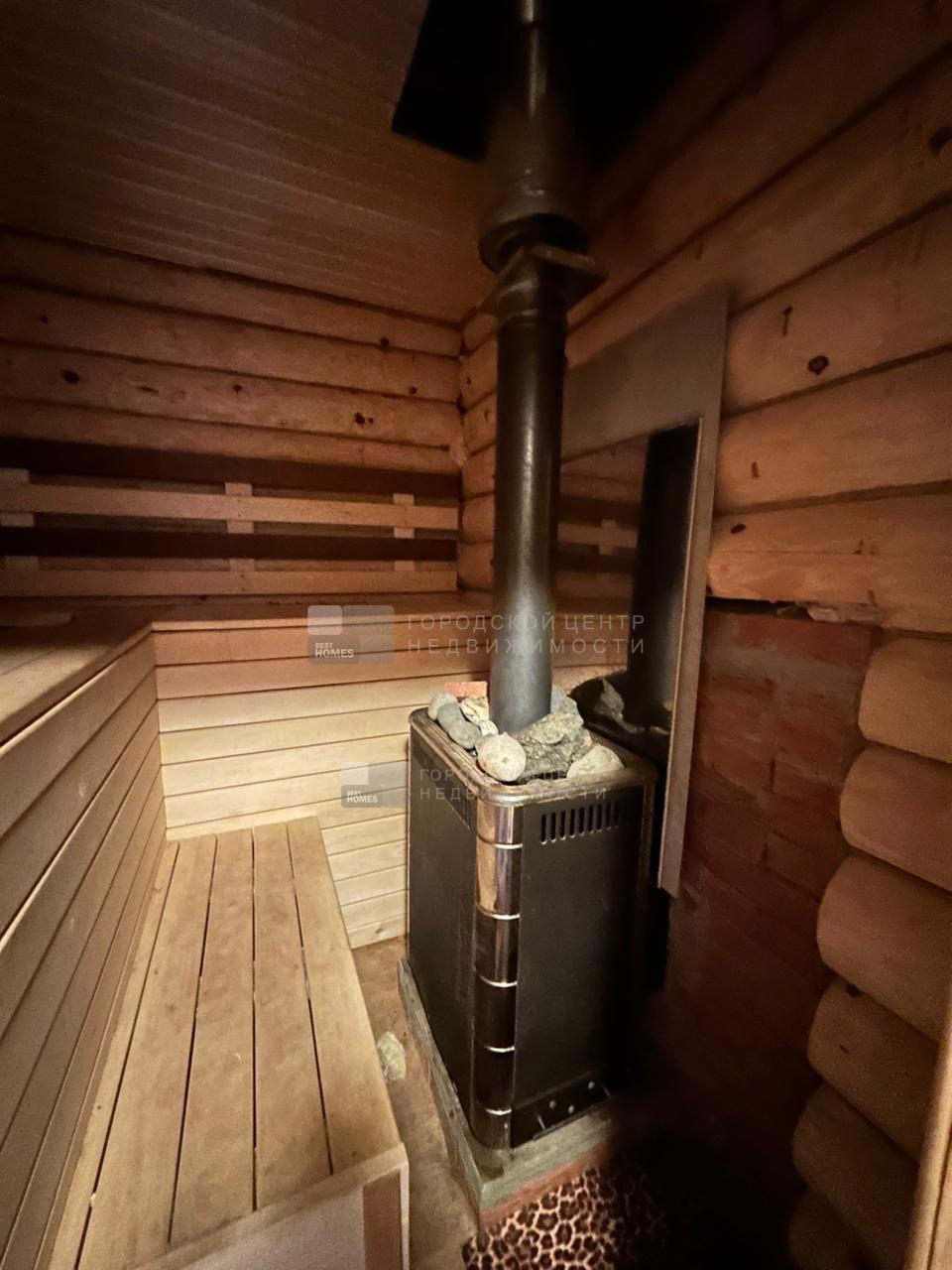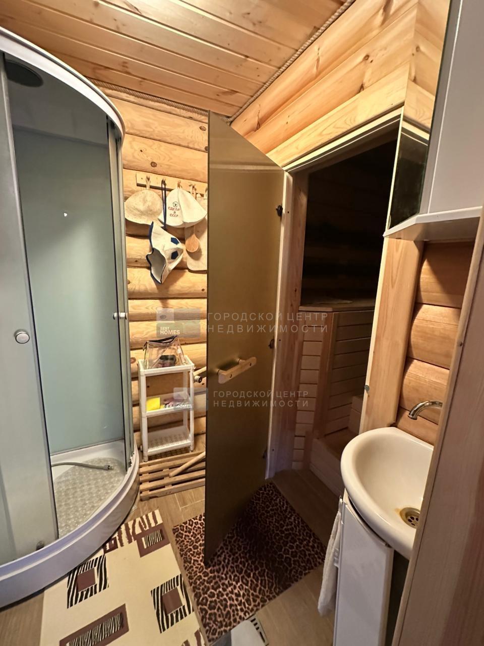 Внутри просторная комната отдыха, парная, в с/у умывальник и душ.