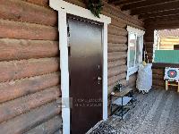 Внутри интерьеры сохраняют естественный цвет дерева с элементами белого декора на окнах и наличниках.