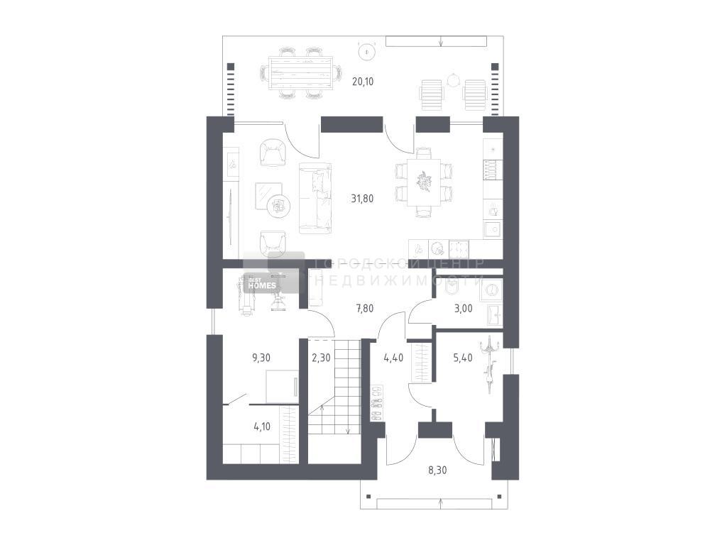 В продаже вилла площадью 194,2 м2 на участке 6,77 соток от застройщика «Самолет» в загородном проекте PORT EMM ZAVIDOVO.