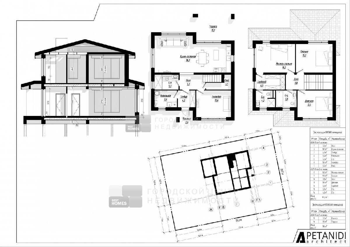 2 этажа, 4 спальни, 3 санузла.