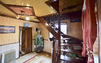 Второй этаж основного здания обустроен для проживания, первый под офис (торговое помещение и т.д.) Спустился из дома по лестнице - и ты уже на работе. Имеются два раздельных входа: один на первый этаж с улицы , второй со своего участка на второй этаж.