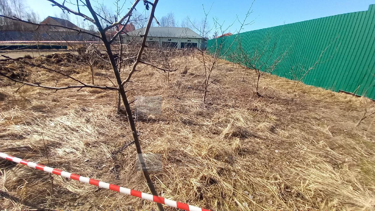 Участок сухой, 2 уровня. На более низком уровне молодой яблоневый сад. Отличные асфальтирование, подъездная дорога к участкам застройки освещена.