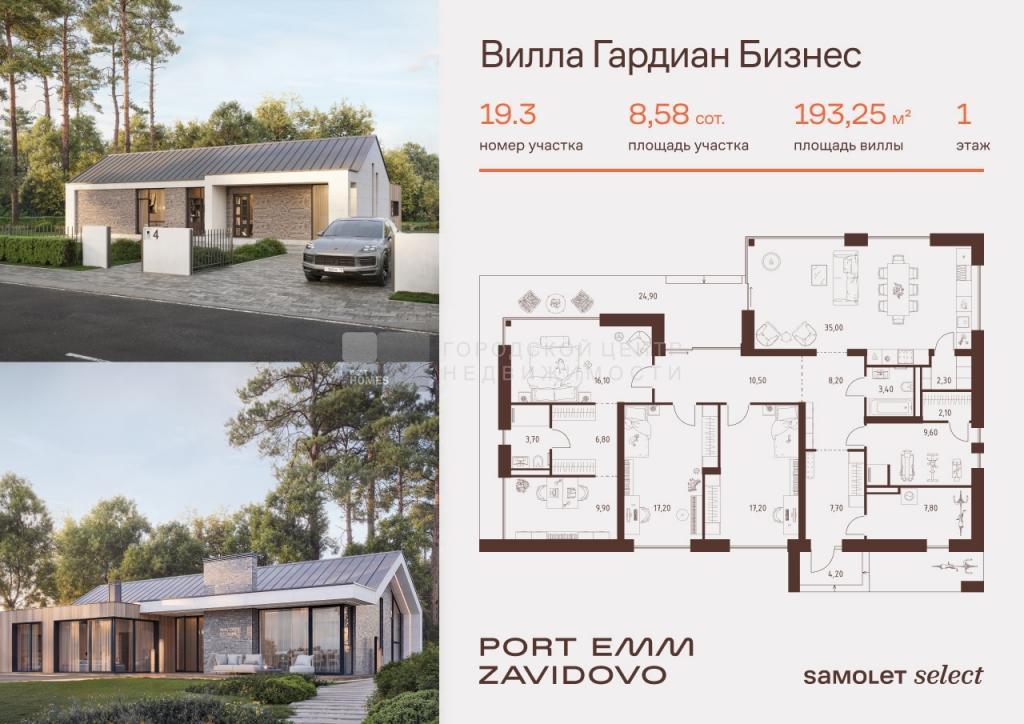 В продаже вилла площадью 193,25 м2 на участке 8,58 соток от застройщика «Самолет» в загородном проекте PORT EMM ZAVIDOVO.