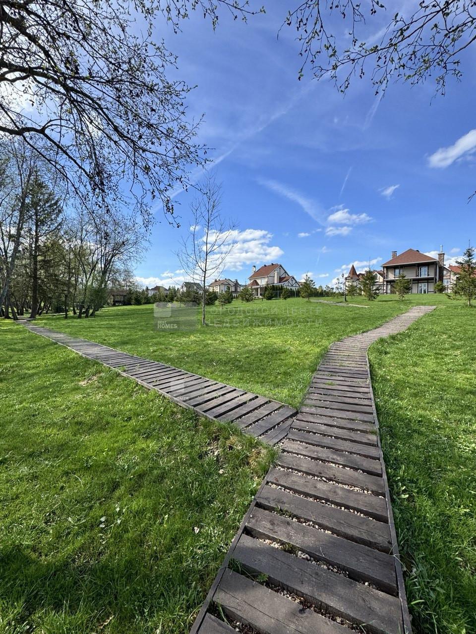 Земельный участок выравнен, высажен газон и готов к воплощению ваших ландшафтных проектов.