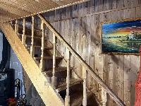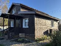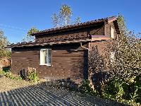 2-эт. дом 94 м2 построен из бруса 150Х150мм, снаружи утеплен (напыляемый утеплитель ППУ 100мм) и обшит имитацией бруса. Покрашен в темно-коричневый цвет.