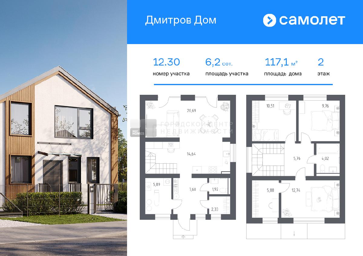 В продаже дом площадью 117,06 м2 на участке 6.16 от застройщика «Самолет» в загородном проекте «Дмитров Дом».