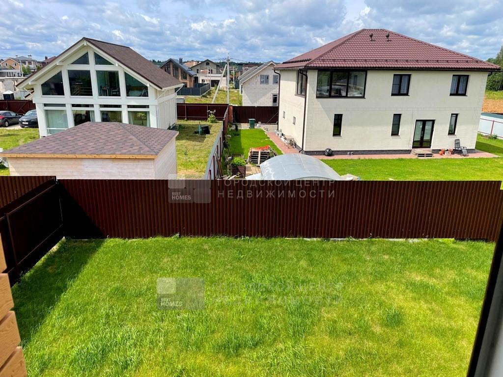 Участок 8,5 соток, правильной прямоугольной формы, сухой и солнечный, тщательно выровнен и превращен в мягкий густой газон. Огражден забором из профлиста, въезд через автоворота, есть гараж-навес на 2 авто.
