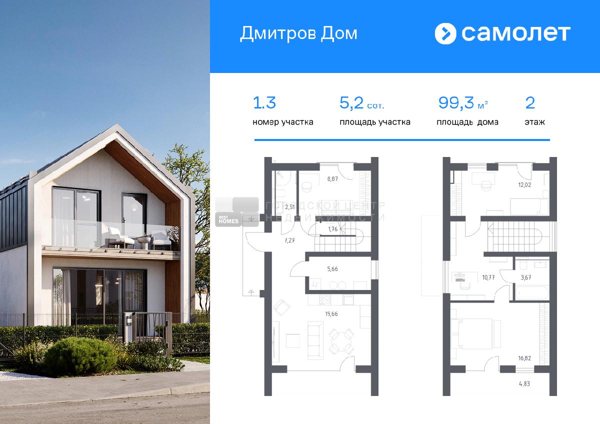 В продаже дом площадью 99,3 м2 на участке 5.21 от застройщика «Самолет» в загородном проекте «Дмитров Дом».