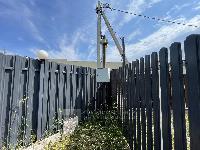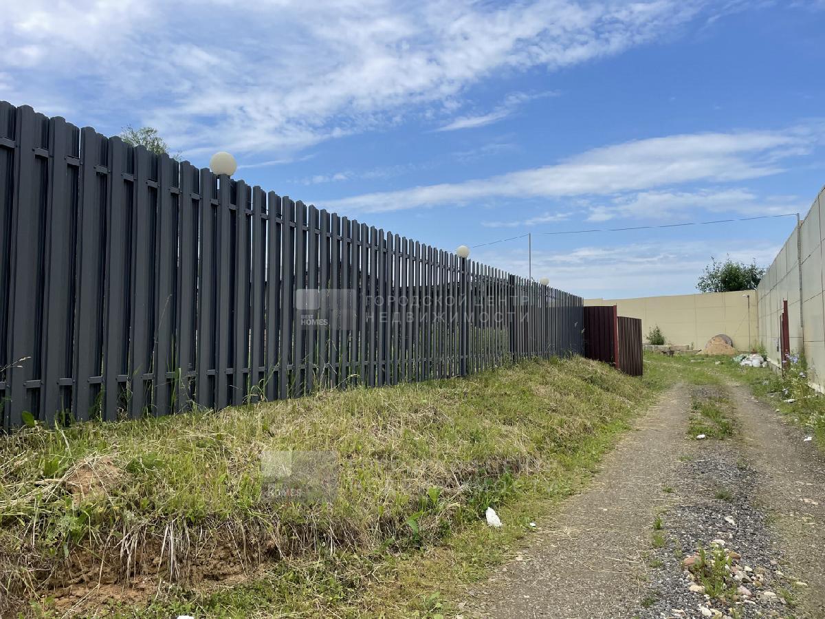 Участок огорожен евроштакетником.