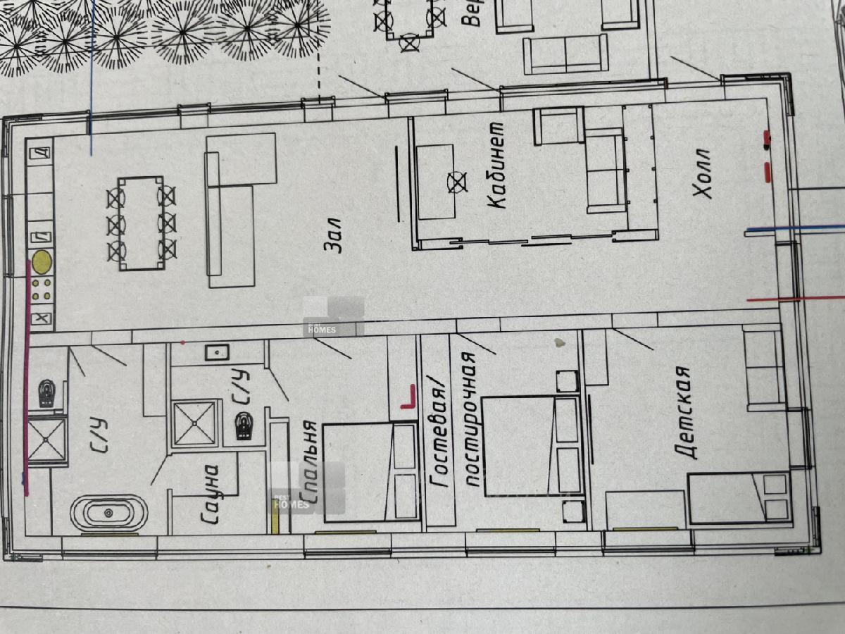 Светлая гостиная с большими окнами (тройной стеклопакет с термоизоляцией). Три спальни, в родительской спальне свой санузел. Второй санузел большой с парильной комнатой.